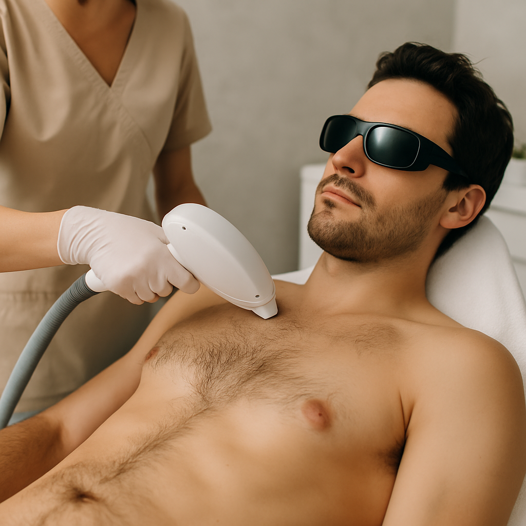 Laser hair removal works by targeting the pigment in each hair follicle, heating it to prevent future growth. The chest area, while larger than some zones, responds well to treatment — with each session typically taking around 20–30 minutes depending on hair density.